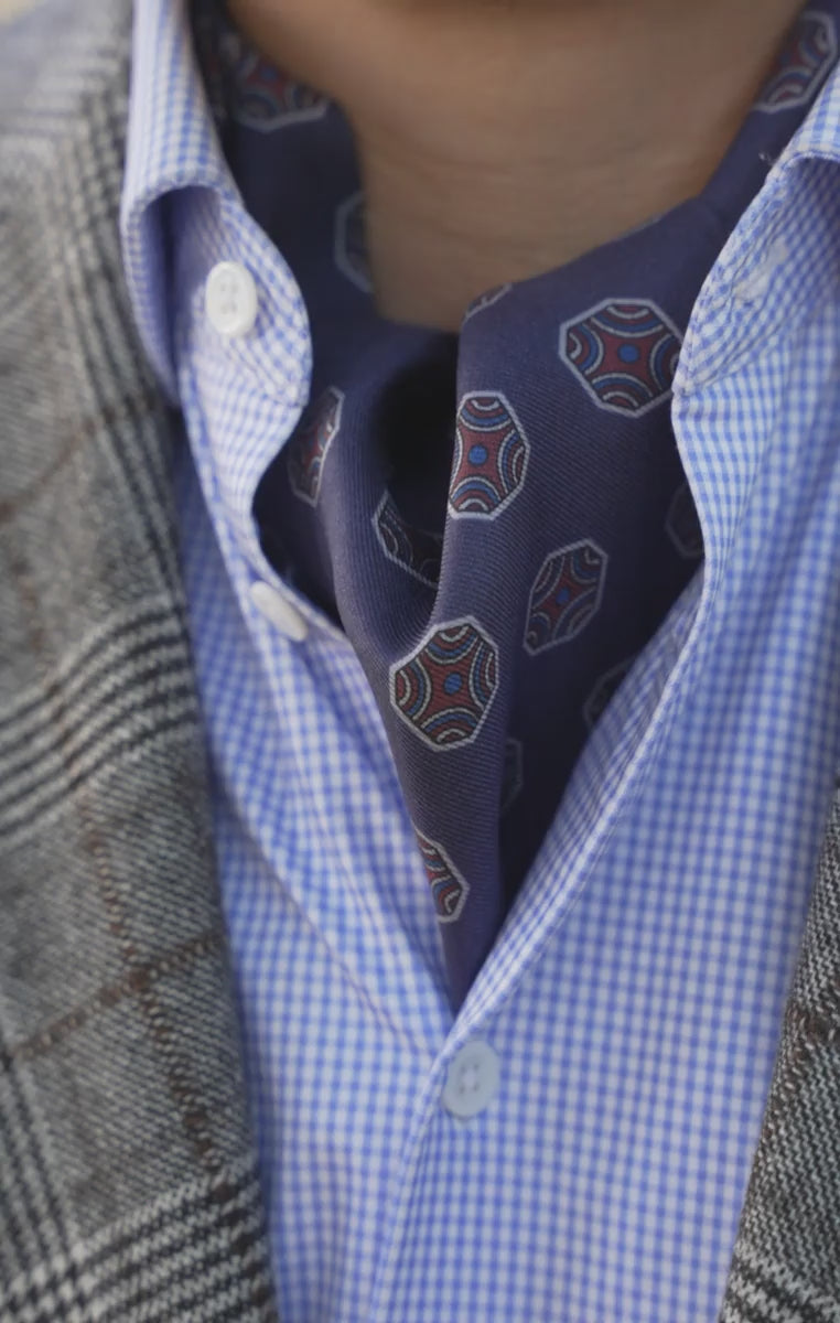 Light Navy Fancy Tile Silk Ascot