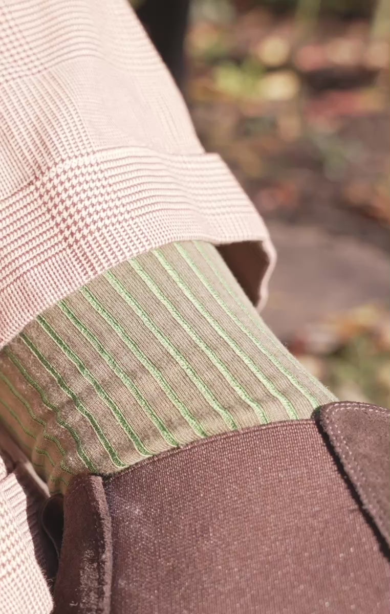 Mid Brown & Green Shadow Stripe Cotton Socks