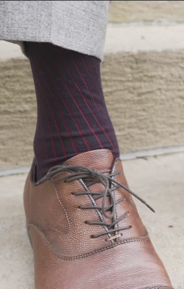 Midnight Blue & Burgundy Red Shadow Stripe Cotton Socks