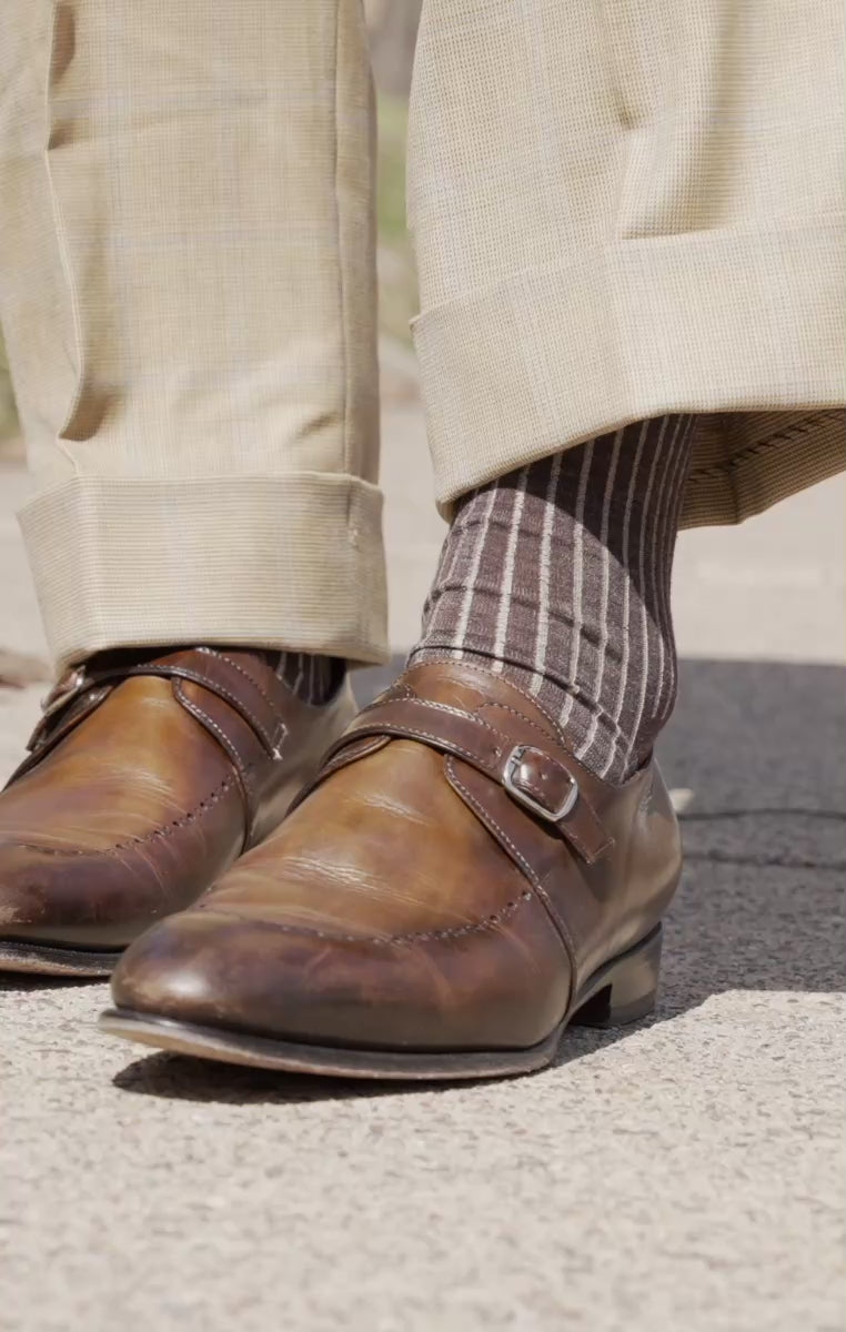 Dark Brown & Beige Shadow Stripe Cotton Socks